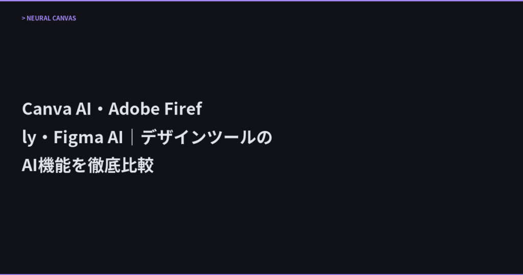 Canva AI・Adobe Firefly・Figma AI|デザインツールのAI機能を徹底比較